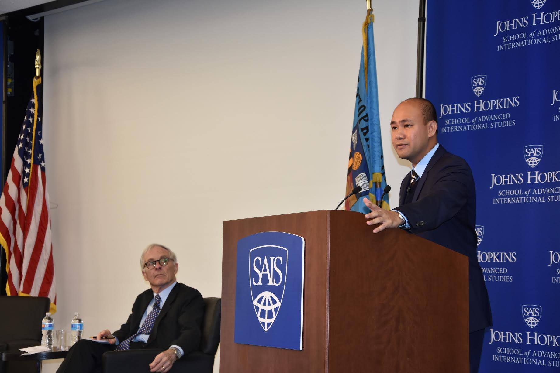 (សហរដ្ឋអាមេរិក)៖ តបតាមការអញ្ជើញពីវិទ្យាស្ថាន US-KI, SAIS នៃសាកលវិទ្យាល័យ Johns Hopkins សហរដ្ឋអាមេរិក ឯកឧត្តមហ៊ុន ម៉ានី បានដឹកនាំគណៈប្រតិភូកម្ពុជា ចូលរួមធ្វើជាវាគ្មិនកិត្តិយស ក្នុងបទបង្ហាញមួយស្តីពីទំនាក់ទំងកម្ពុជា និងសហរដ្ឋអាមេរិក (Cambodia-US Relations) ដែលពិធីនេះត្រូវបានប្រារព្វធ្វើឡើងកាលពីថ្ងៃទី២០ ខែមករា ឆ្នាំ២០១៦ នៅសាលសន្និសីទ Kenny Auditorium នៃសាកលវិទ្យាល័យ Johns Hopkins ក្នុងទីក្រុងវ៉ាស៊ីនតុន នេះបើយោងតាមមន្រ្តីដែលចូលរួមក្នុងកម្មវិធីខាងលើនេះថ្លែងប្រាប់ Fresh News នាព្រឹកថ្ងៃទី២១ ខែមករា ឆ្នាំ២០១៦។