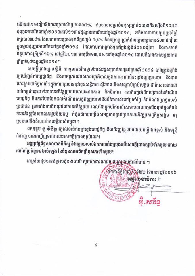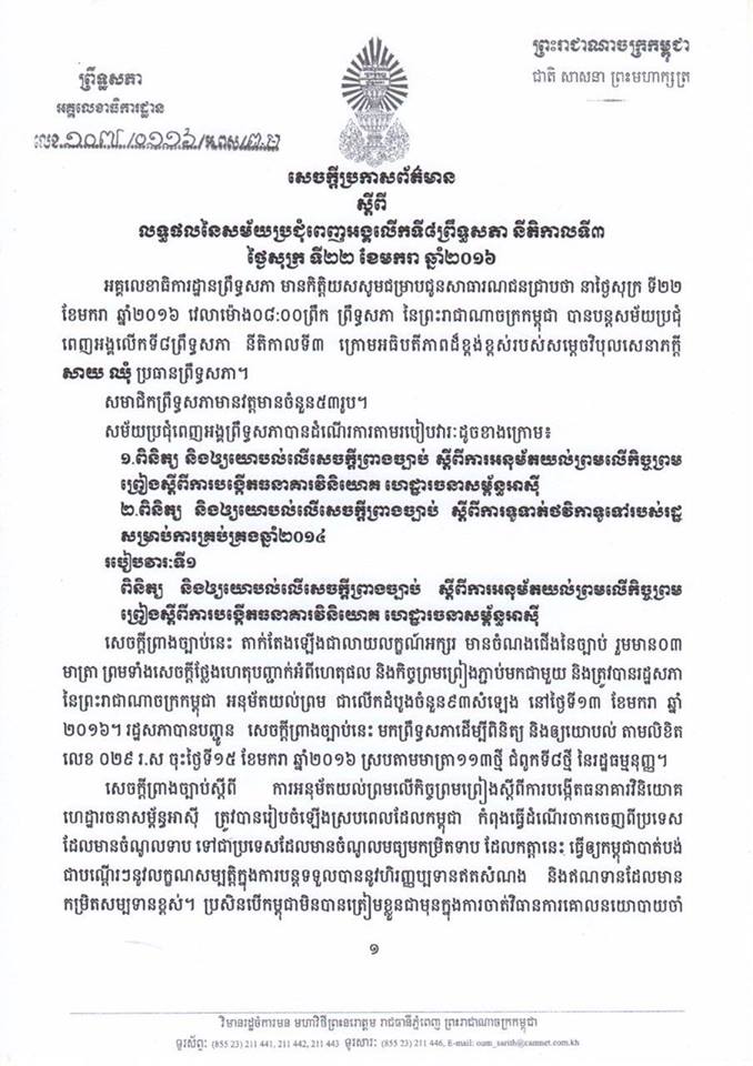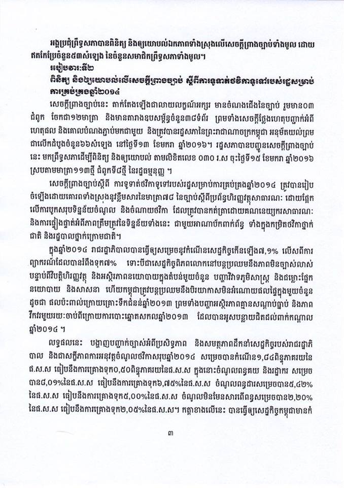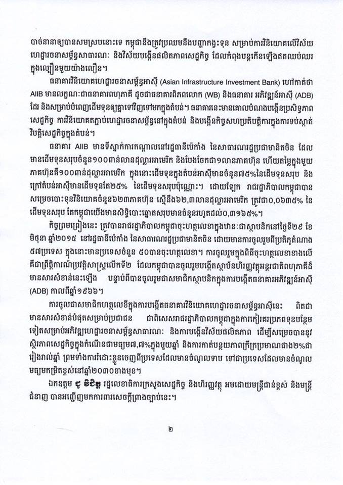 ព្រឹទ្ធសភាបានអនុម័ត លើសេចក្តីព្រាងច្បាប់ស្តីពី ការបង្កើតធនាគារវិនិយោគ ហេដ្ឋារចនាសម្ព័ន្ធអាស៊ី និងសេចក្តីព្រាងច្បាប់ទូទាត់ថវិកា២០១៤